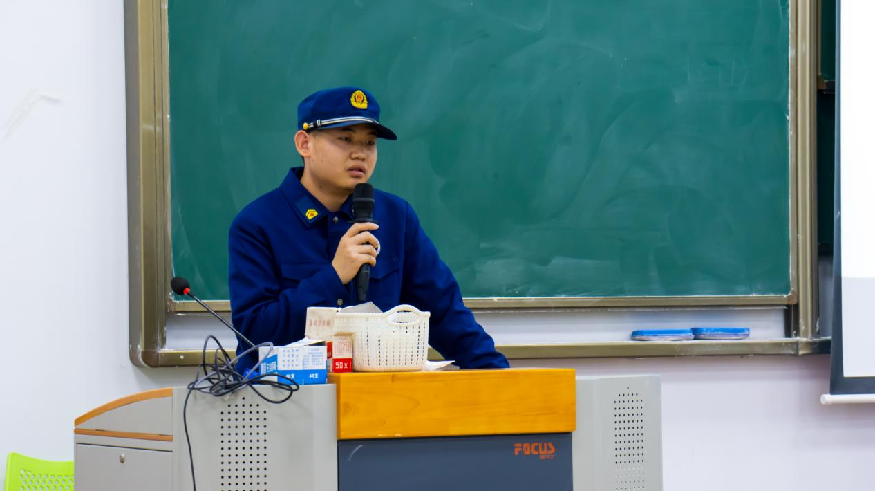讲座开始,消防员播放近年发生在全国各地的一些大小火灾事故的实例视频,同时为大家讲述了近期发生在我们身边,因缺乏相关消防知识而发生的惨痛“悲剧”,发人深省。然后,消防员向大家讲解了基本的消防知识,涉及火灾发生的原因、怎样预防火灾、火场逃生基本知识、灭火器的正确使用以及如何正确报警等内容。在讲解的过程中,他不仅从理论上教育大家应提高消防安全意识,而且通过亲自示范如何正确使用灭火器和其他求生工具,来让大家切实体会具备基本消防安全知识的重要性。