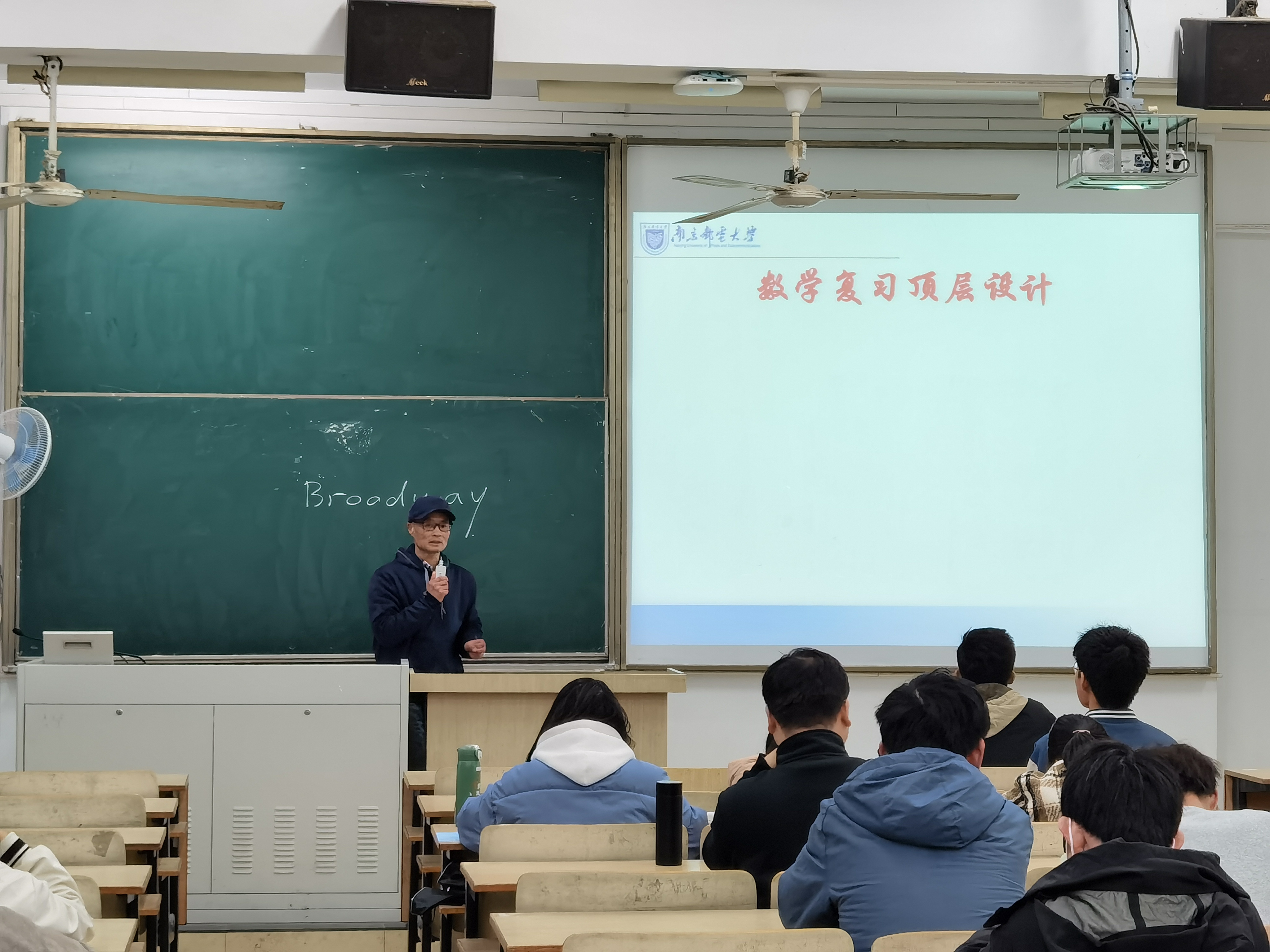 随后,邱中华教授从数学复习顶层设计和数学复习阶段两个方面就考研数学复习的目标和规划、各阶段的中心任务、典型例题等内容为同学们做了分享。他强调,考研数学的准备宜早不宜迟,要夯实基础,制定可实现的目标,安排适合自身的复习规划,养成良好的复习习惯。