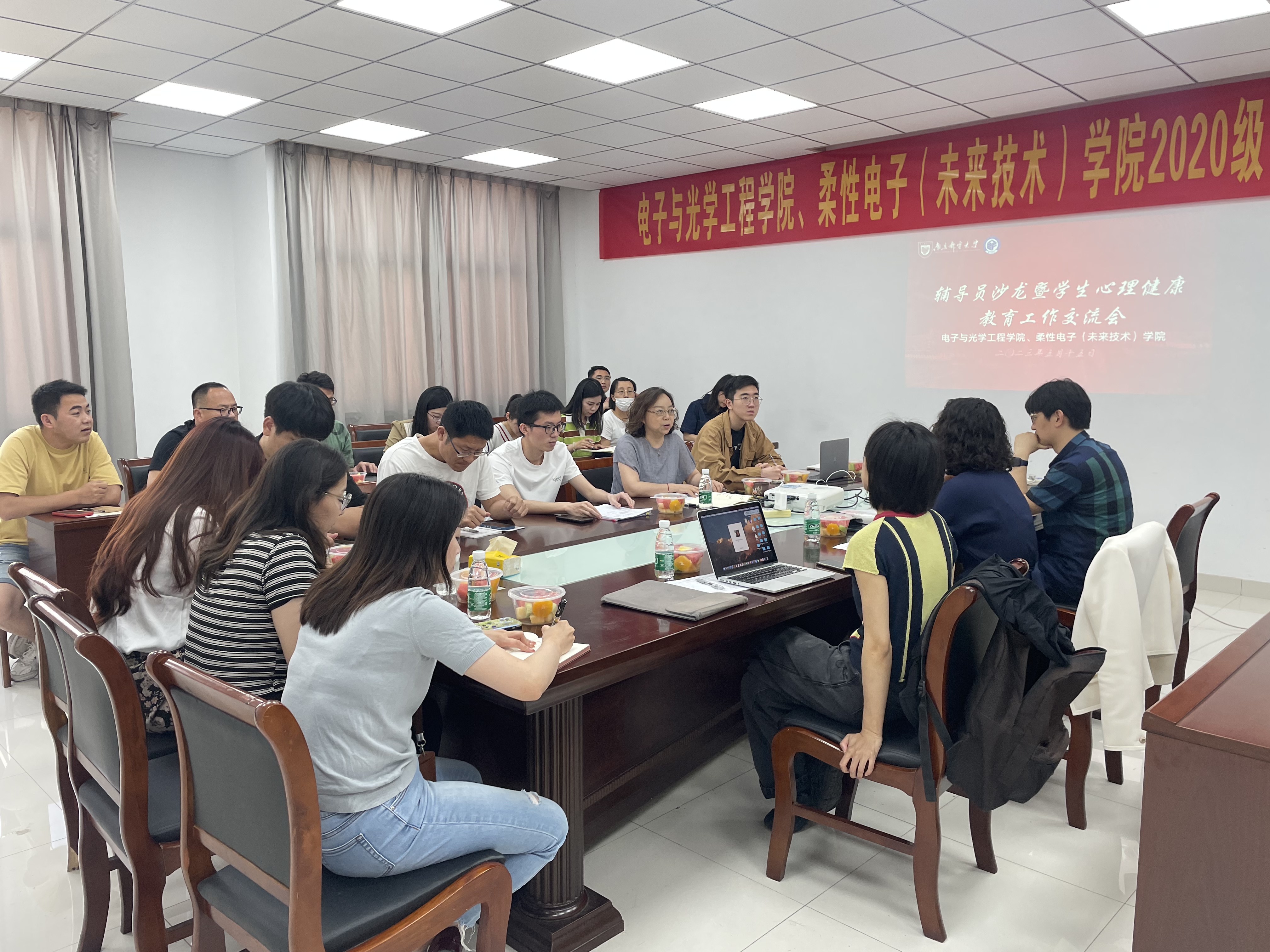 为进一步深化落实学院心理健康教育工作,不断提高我院辅导员心理健康教育水平,促进教师专业成长。5月15日上午,电光柔学院开展了第四期辅导员沙龙暨心理健康工作交流会。南京邮电大学学生工作处副处长陆晓花、心理健康教育与工作中心成颢老师、张本石老师,电子与光学工程学院、柔性电子(未来技术)学院党委副书记、副院长徐磊,全体辅导员参会,本次沙龙由徐磊主持。