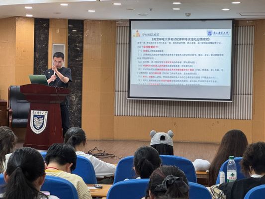 会上,吉峰老师结合近年高校典型案例,深入剖析考试违纪的严重后果。例如,某高校学生因组织替考被追究刑事责任,另一学生因夹带资料被取消学位授予资格。他援引《南京邮电大学考试纪律和考试违纪处理规定》等文件,系统解读“考试违纪”与“考试作弊”的认定标准及处分细则,强调违纪行为将导致课程重修、评优资格取消、学位暂缓授予等后果,情节严重者将被开除学籍。“诚信是学术的底线,更是立身的根本。”吉峰老师表示,“侥幸心理不可有,纪律红线不可越。”