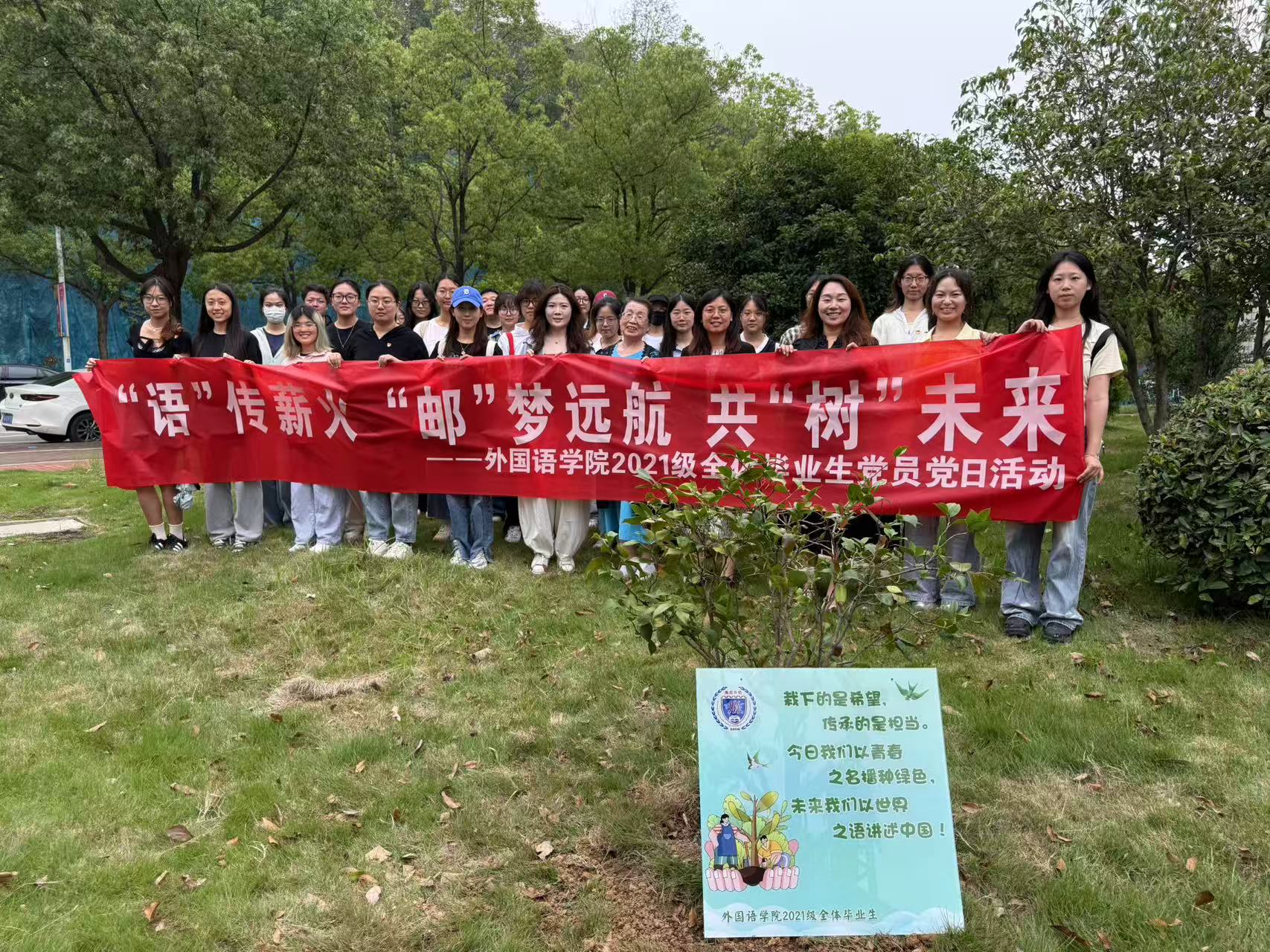为强化毕业生党员理想信念教育,厚植爱校荣校情怀,激励毕业生党员在新征程上不忘初心、砥砺前行,6月17日下午,外国语学院开展毕业生党员“语传薪火 ‘邮’梦远航”主题党日活动暨捐树仪式。外国语学院党委书记陈晓波,关工委副主任何秋沙,党委副书记、副院长高艳丽,本科生第一党支部书记缪甜佳、副书记张瑜和2025届毕业生党员代表共同参加了活动。活动由张瑜老师主持。
