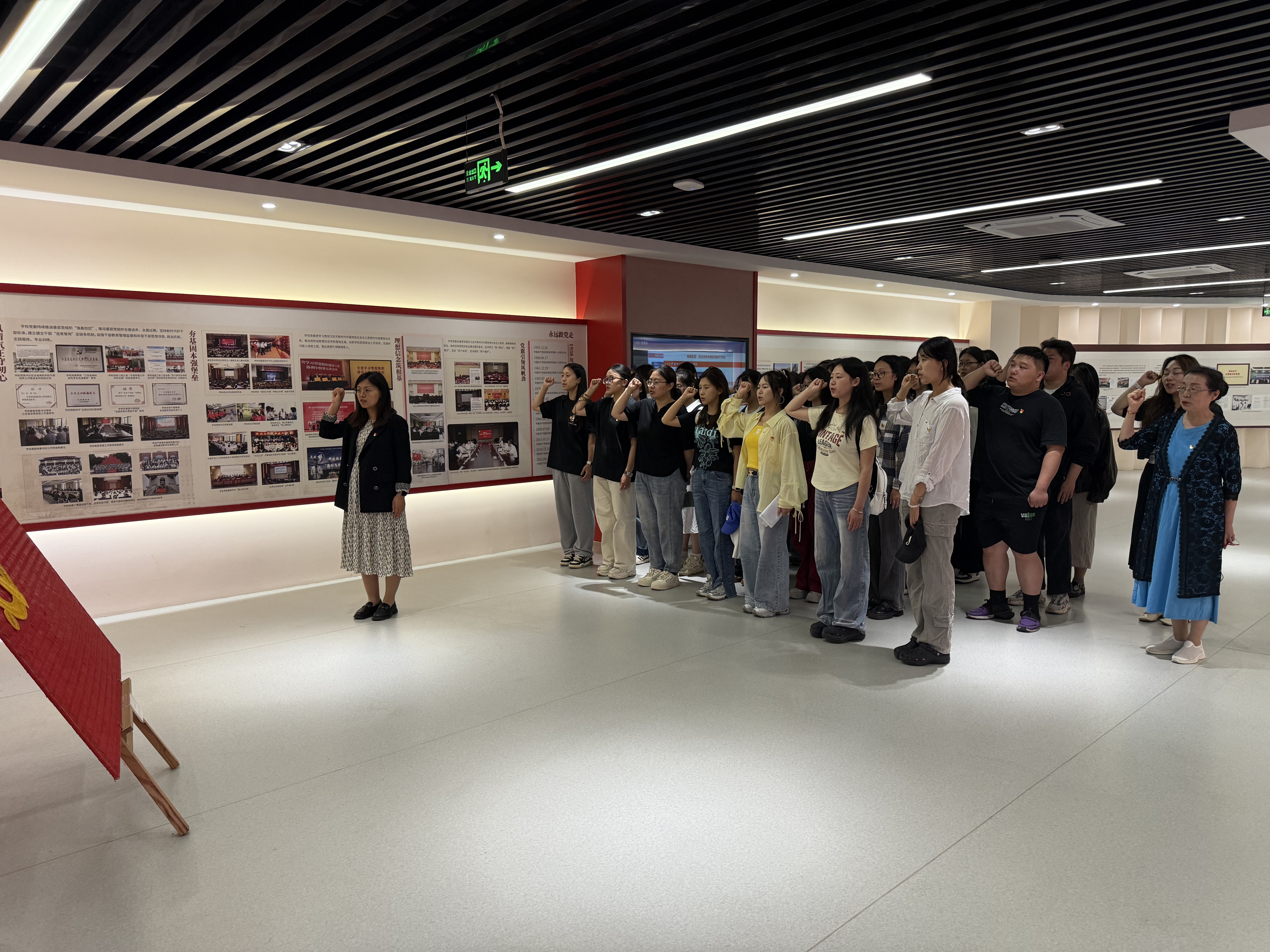 全体毕业生党员在校史馆讲解员的引导下,通过一幅幅历史照片、一件件实物展品重温南京邮电大学“战邮精神”的红色血脉,感悟学校与新中国通信事业同频共振的发展历程。外国语学院关工委副主任何秋沙老师结合个人成长经历,带领同学们回顾了学校因邮电而生、随通信而长、由信息而强的奋斗历程,深刻揭示了“信达天下、自强不息”精神如何熔铸成南邮人代代相传的精神丰碑。何老师勉励大家既要发挥语言优势做中华文化的传播者,更要以党员标准严格要求自己,践行中央八项规定精神,在对外交流中守住底线、不碰红线,用实际行动维护国家形象。在学院党委副书记高艳丽的领誓下,全体毕业生党员面向鲜红的党旗,庄严举起右拳,重温入党誓词。铿锵有力的誓言在校史馆内回荡,激励党员们再次叩问入党初心,践行使命担当。