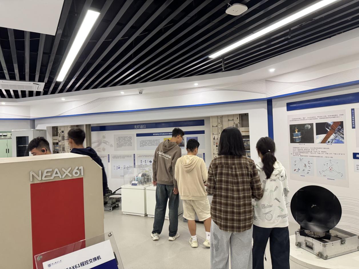 在校史馆内,同学们仿佛穿越时空,沉浸在学校悠久历史的长河中。从学校创立之初的筚路蓝缕,到如今在通信领域取得的辉煌成就,每一张珍贵的照片、每一件历史的实物都在诉说着南邮人砥砺奋进的故事。讲解员详细地为同学们讲解着校史馆内的展品,从老一辈通信人的艰苦创业,到新时代南邮学子在科技创新领域的卓越表现,大家深刻感受到了南邮红色基因的传承与发扬。