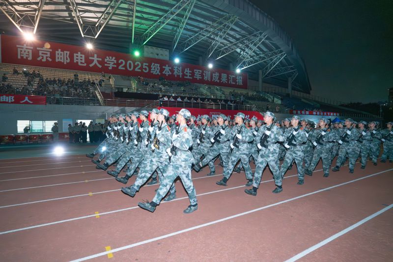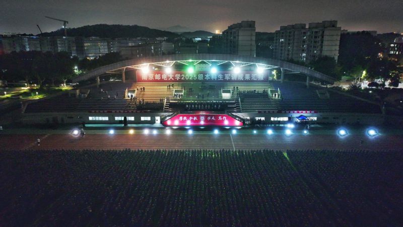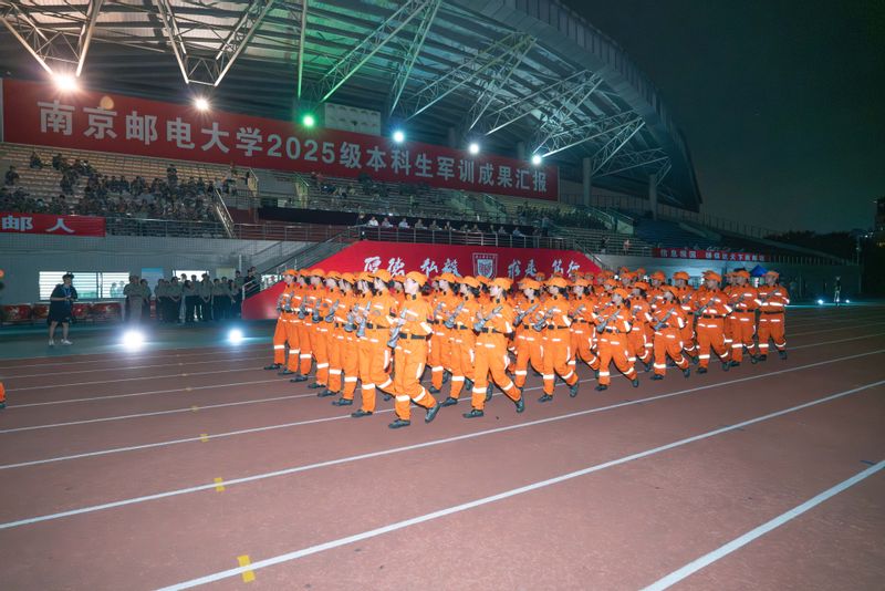 9月29日晚,南京邮电大学2025级本科生军训成果汇报大会在仙林校区主体育场举行。校党委常委、副校长谢平,承训部队大校政治委员鲍俊成、政治工作部中校副主任陈燕平、中校政治教导员丁威出席,军训工作领导小组成员、各学院负责人、承训部队教官、2025级辅导员和全体参训学生参加大会。