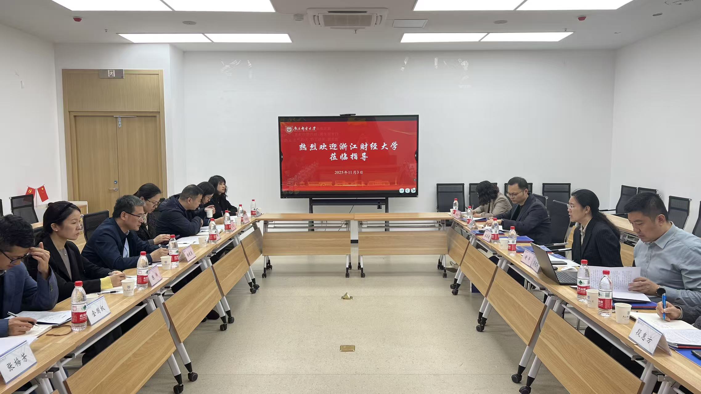 11月3日,浙江财经大学党委副书记徐晓东率队来校调研交流。学校党委常委、副校长谢平出席座谈会,相关单位负责同志参会。
