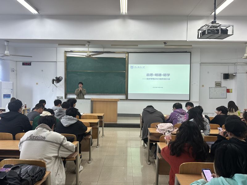 为加强学生日常管理、明确纪律规范、提升安全意识并做好学业发展规划,经济学院于10月23日在教4-311召开2023级年级大会,本次大会由辅导员尤波老师主持,2023级全体学生参加。