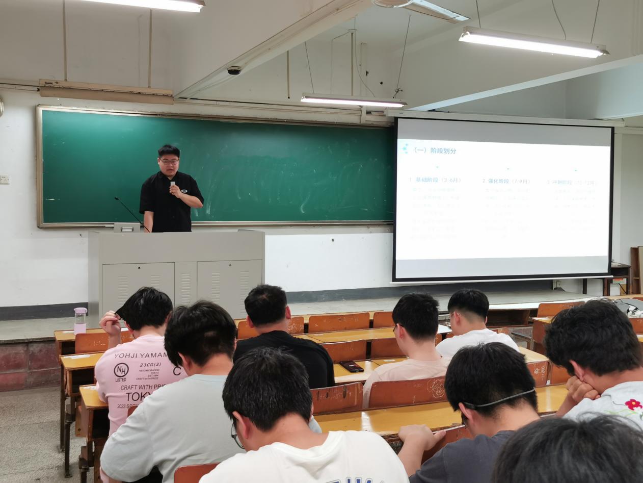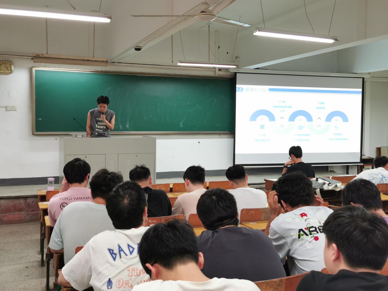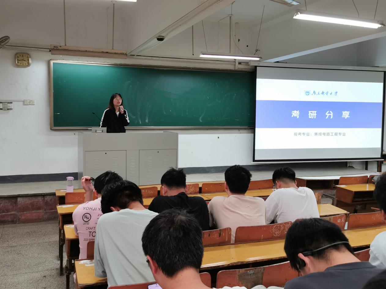 接着,四位考研成功上岸的学长学姐向大家介绍了自己考研复习备考的经验。他们分别是考上现代邮政学院电子信息专业的冯一洲同学、现代邮政学院物流工程与管理专业的李明霏同学、现代邮政学院交通运输专业的王明远同学和南京邮电大学集成电路学院集成电路工程专业的周艺杰同学。四位学长学姐从端正考研动机、考研复习时间安排、各科复习重点、参考教材和工具、备考核心技巧、高效提分方案、心态调整等方面向大家做了全面的介绍。他们对学弟学妹们寄予衷心的祝愿:“祝愿大家成功上岸,一战成硕!”“无论是哪条道路都祝福大家前程似锦,得偿所愿。”