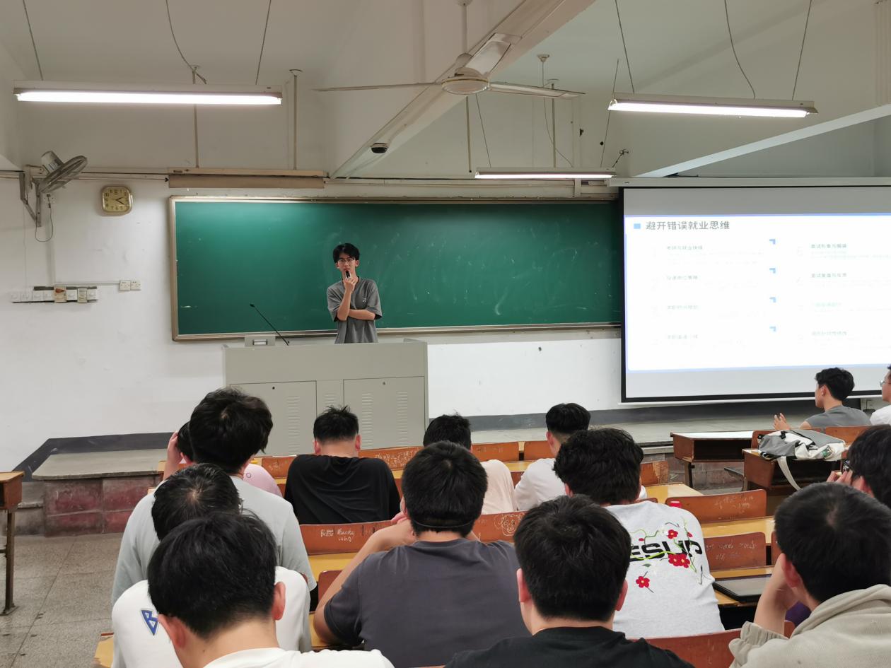 签约至中国邮政集团有限公司苏州市分公司的沈骏杰同学通过幽默风趣的语言和细致全面的PPT向大家介绍了求职前的准备、求职过程中的重点要素、笔试面试的注意事项和求职后的复盘等内容。他寄语学弟学妹们:踏踏实实地开始,你就已经成功一半!