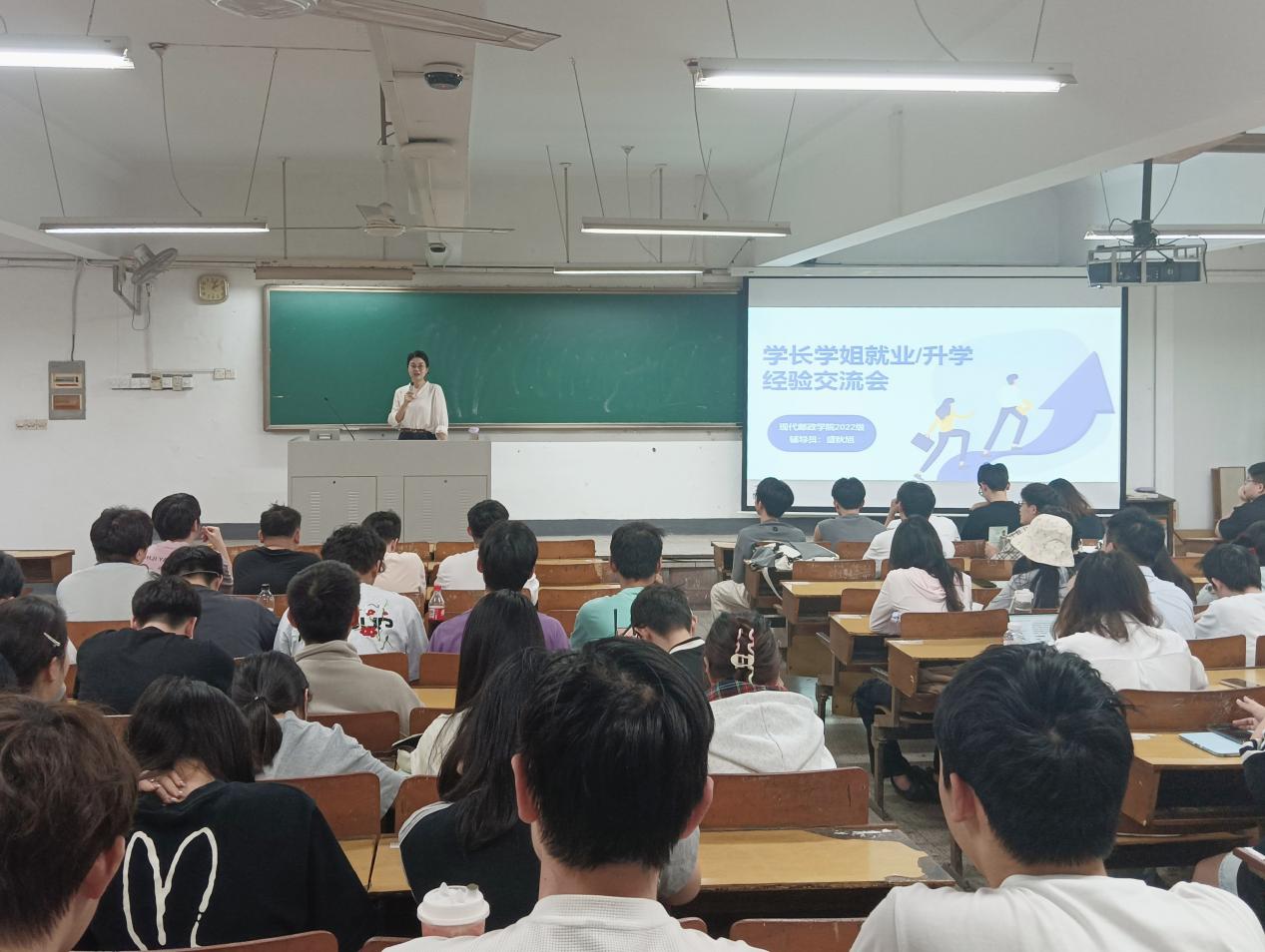 为了更好地对学生进行就业/升学指导,通过学长经验、朋辈引导帮助学生更全面地了解求职和考研备考过程,掌握更多方法和技巧,5月14日下午,现代邮政学院在三牌楼校区无5教室开展“学长学姐就业/升学经验交流会”,现代邮政学院2025届毕业班6名优秀学生代表、2026届150余名毕业生参加,活动由2026届毕业班辅导员盛秋旭组织和主持。