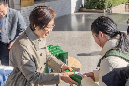 在考研教室里,校领导们将一份份满载祝福的桂花糕送到同学们手中,与大家亲切交流,询问学习生活状况,叮嘱注意劳逸结合,以饱满的精神和稳定的心态迎接考试。星光不问赶路人,时光不负有心人,师长们的殷切关怀与暖心鼓励,让同学们倍感温暖、深受鼓舞,也更加坚定了全力以赴、奋勇拼搏的决心。