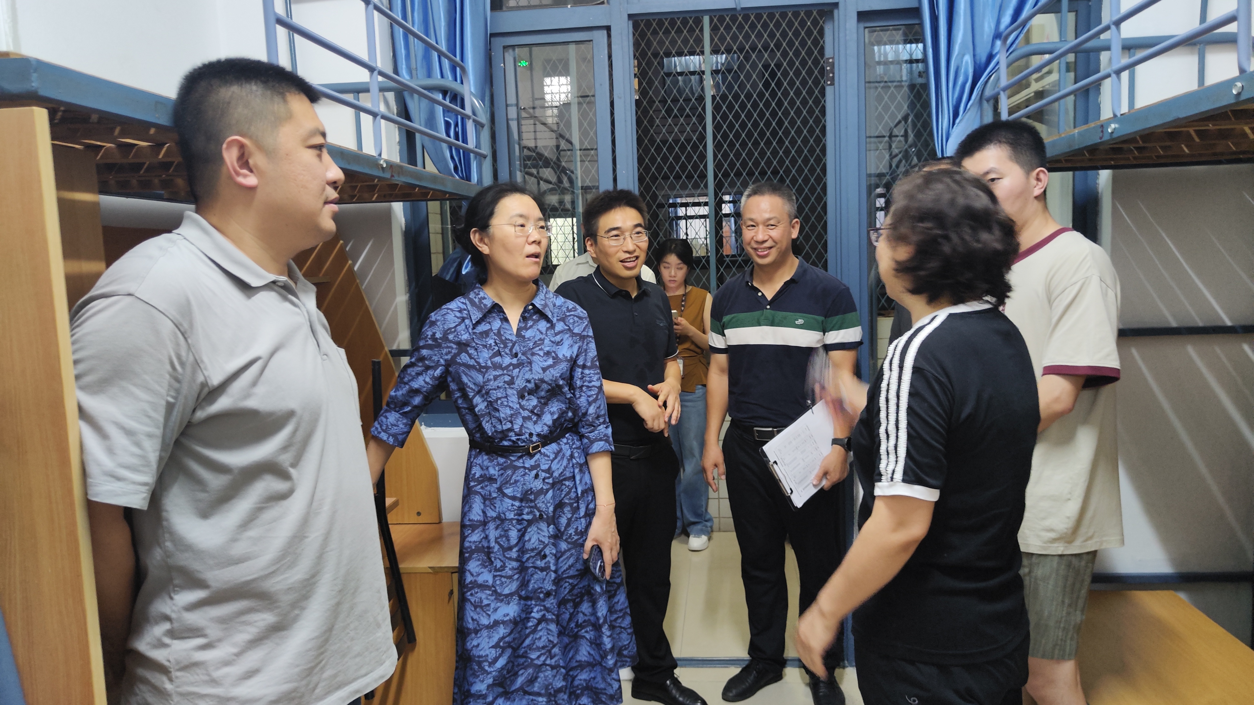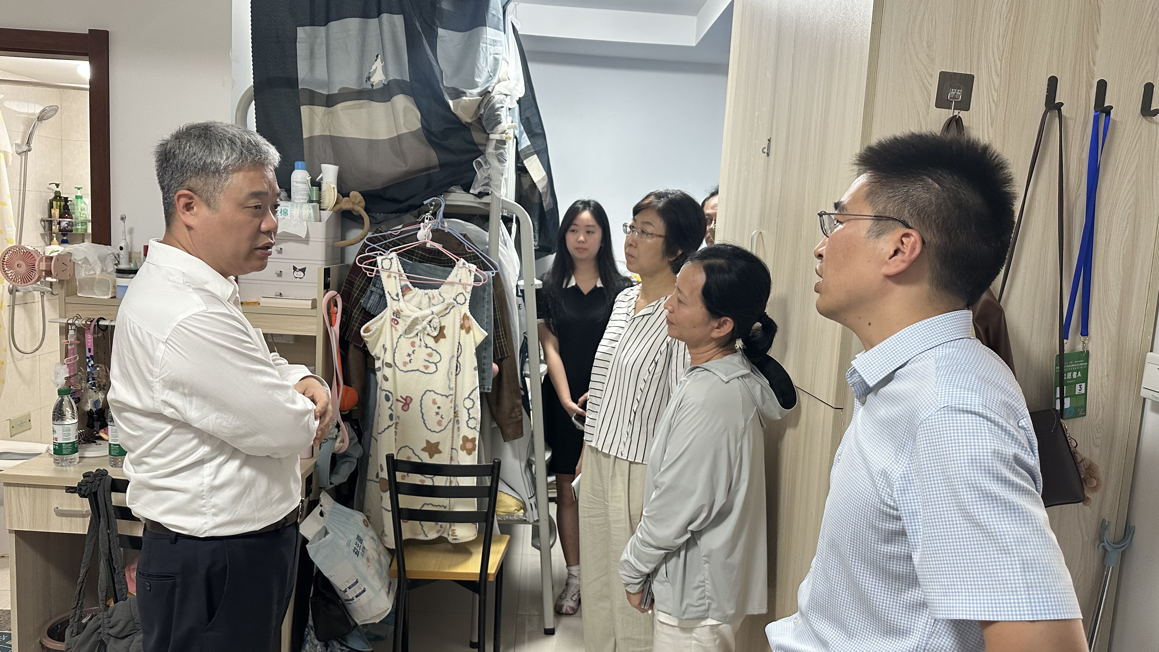 暑期,校党委书记郭宇锋,校党委常委、副校长姜小舜,院党委副书记徐磊及相关职能部门领导、学院辅导员,深入学院学生寝室,关心学生公寓苑区的住宿环境,了解暑期留校同学在校学习生活情况,实地解决学生在生活中遇到的困难,嘱咐同学们在实践中锻炼能力、拓展视野,同时要注意身体健康,为未来学术道路和事业发展打下坚实基础。走访现场气氛温馨,领导老师们平易近人的态度和语重心长的叮嘱,让在场的同学们倍感温暖与振奋。
