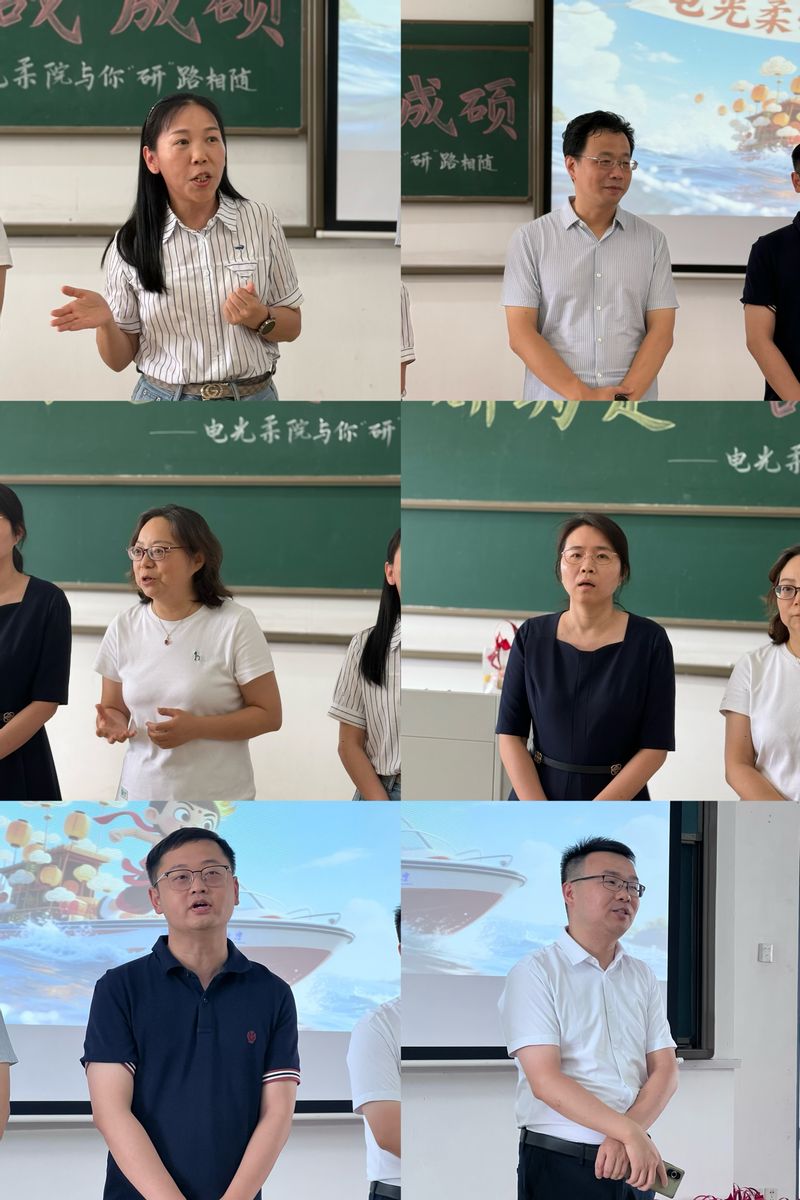 黄丽亚书记赞扬了同学们不畏酷暑、坚持复习的拼搏精神,并勉励同学们保持专注、坚定信念,在备考路上持续努力、不断超越自我,用坚持和汗水书写属于自己的精彩。余林蔚院长提醒同学们合理择校、劳逸结合,欢迎报考本校,并祝愿大家“一战成硕”。徐磊副书记鼓励同学们保持平稳心态,专心致志、积极备考。刘蕾蕾、马云、谌静等副院长也依次寄语,叮嘱同学们注重学习方法、提高效率,同时注意防暑、保重身体。