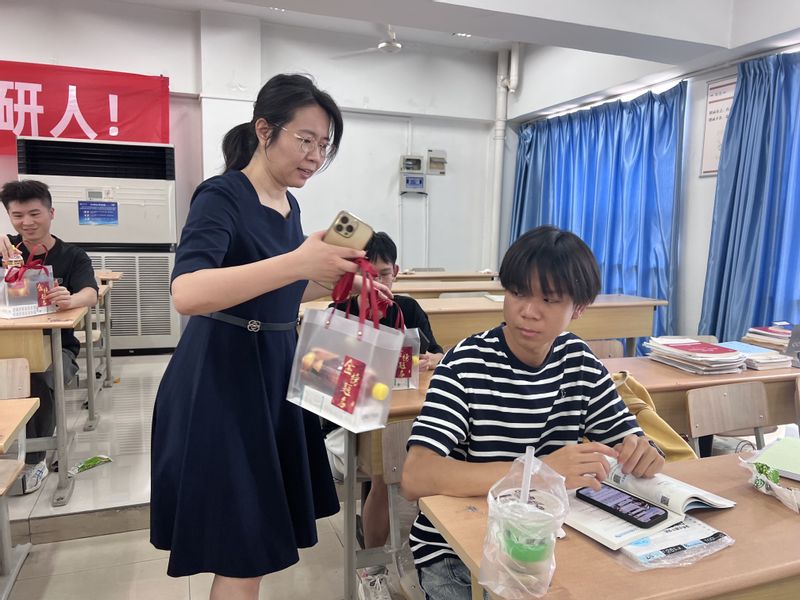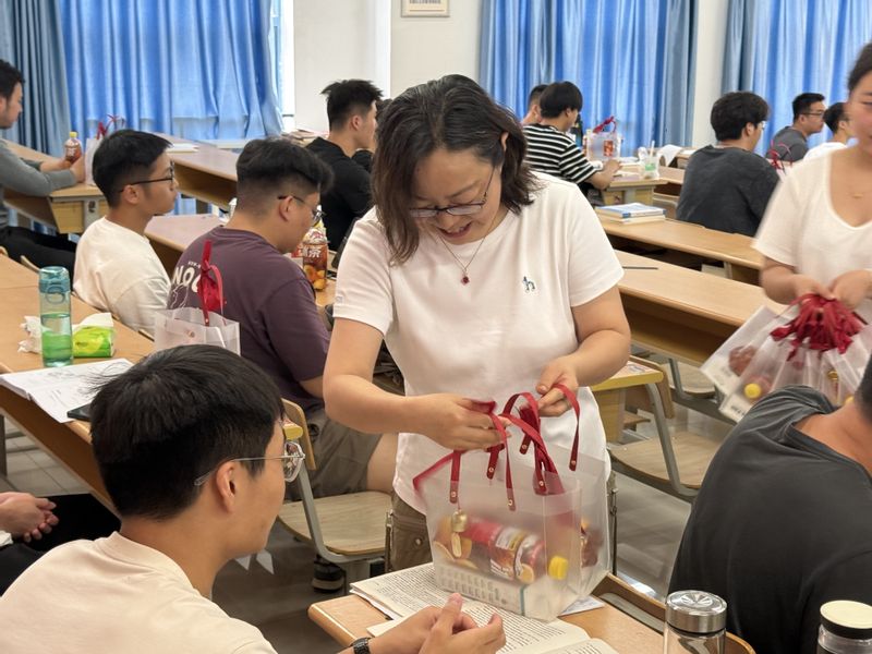 随后,辅导员们介绍了考研礼包中各物品的寓意,并送上暖心祝福。学院领导、老师与学生党员一同为同学们发放了加油礼包和消暑冰淇淋。每一份慰问品都承载着学院的深切关怀与殷切期望。