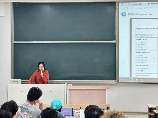 吕蔷蔷书记现场向同学们展示如何准确、高效地获取目标院校信息,分析了学院近三年考研学生的学业水平,结合近年我院毕业生去向情况,解读材料院各学位点的专业特色和就业方向。基于此,尤其强调考研要认清自我,理性选择,扎根基础,充分结合毕业意向和科研方向,做好长远人生规划。