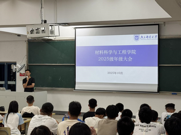 2025年10月9日,南京邮电大学材料科学与工程学院2025级全体新生及辅导员在教2-401开展学风建设年级大会。本次会议由2025级辅导员陈骏老师主持,全体2025级材料院新生参与,陈老师围绕学业规划、就业前景、转专业政策、校纪校规及奖助政策学习宣传以及大学生应具备的品质展开交流,为同学们新阶段的学习与生活指明了方向。