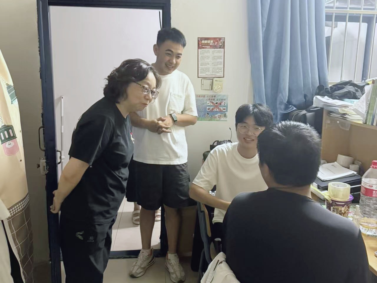 走访过程中,徐书记与老师们与同学们进行了亲切交流,详细询问了大家的假期生活、返乡见闻及返校行程,细致了解了同学们在学业、生活等方面的适应情况与存在的实际困难。徐书记鼓励大家要及时调整状态,收心归位,合理规划时间,以饱满的热情和昂扬的斗志迎接接下来的学习任务。老师们贴心的话语和殷切的关怀,让同学们倍感温暖,宿舍内气氛融洽,笑语不断。