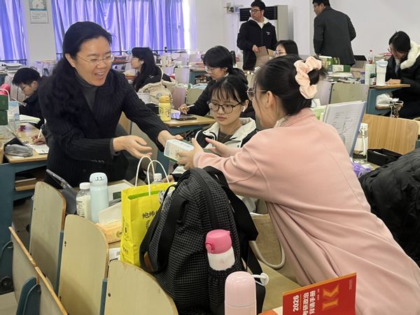 谢平副校长与考研学子亲切交流,鼓励同学们坚定信念,安心备考,保持积极乐观的心态,按照复习计划稳步推进;叮嘱同学们在最后阶段要科学规划、查漏补缺,注意身体健康与心理调节,保持高效复习,从容应考。陈晓波书记、葛谢飞副院长充分肯定同学们坚持不懈的备考状态,鼓励大家坚定目标、稳扎稳打,以平和的心态和扎实的准备迎接挑战;叮嘱同学们在冲刺阶段注意劳逸结合,以饱满的精神状态迎接考试。谢平副校长与学院领导共同为考研学子发放学校特制的状元桂花糕。
