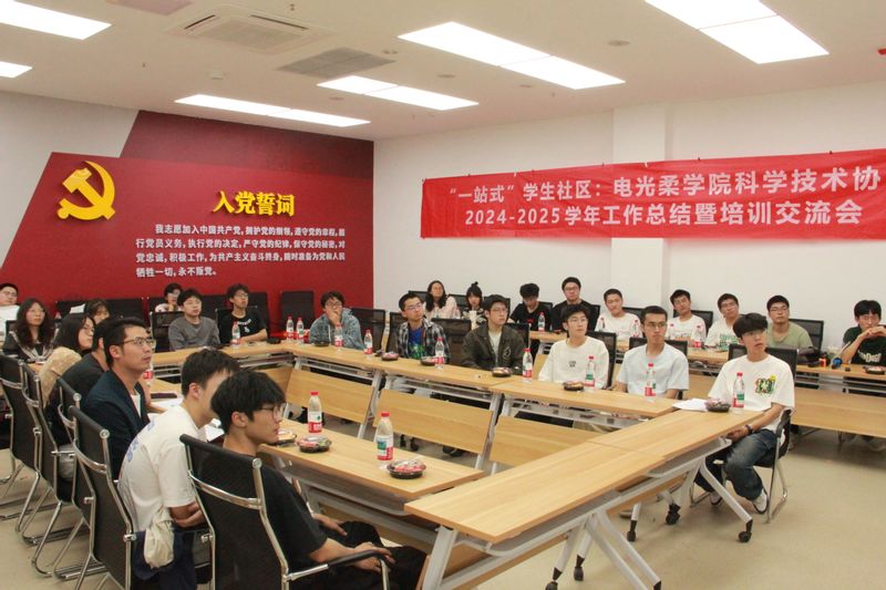 为全面总结学年工作成果、凝聚发展共识,推动学生社团高质量发展,南京邮电大学电子与光学工程学院、柔性电子(未来技术)学院科学与技术协会于4月28日晚上在一站式学生社区306室顺利举办2024-2025学年工作总结暨培训交流会。学院分团委书记吴鹏、科协指导老师刘振、科协主席团成员及学生骨干代表共同参会。