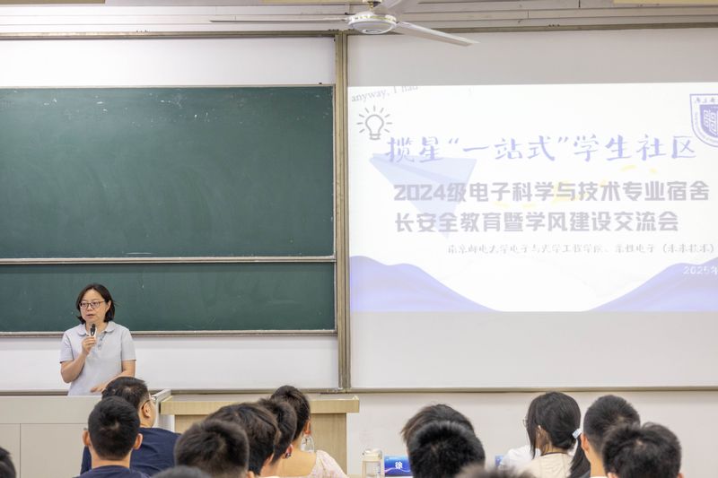 为深入贯彻教育部《高校“一站式”学生社区综合管理模式建设提质增效指南》,推动育人力量下沉学生社区,5月27日下午,电子与光学工程学院、柔性电子(未来技术)学院2024级于教三-305教室及桃苑宿舍社区顺利举办“一站式”学生社区建设活动。学院党委副书记、副院长徐磊,桃苑宿管站站长朱兴妹,班主任代表孙树将、陈青云,辅导员刘振及全体宿舍长、班委代表参会,共商社区育人新路径。