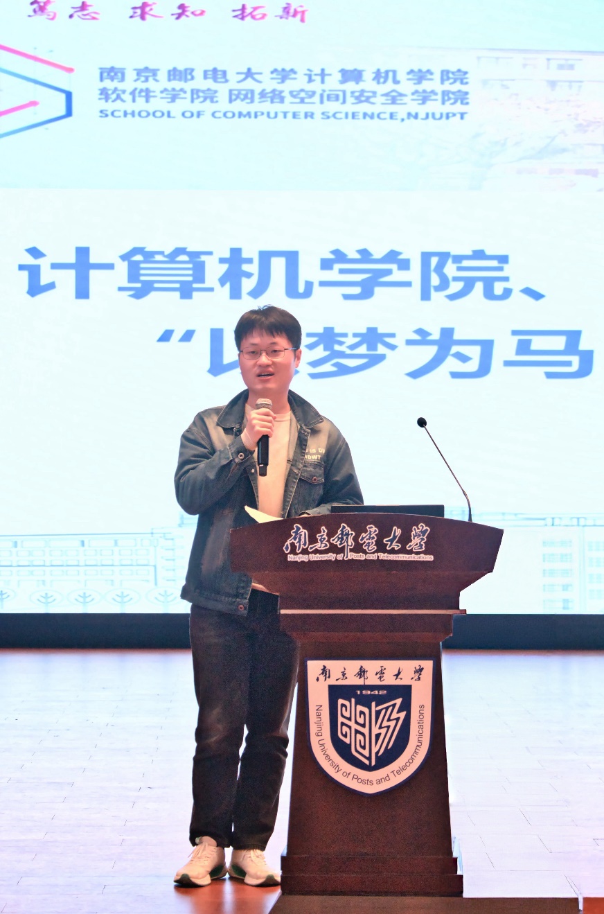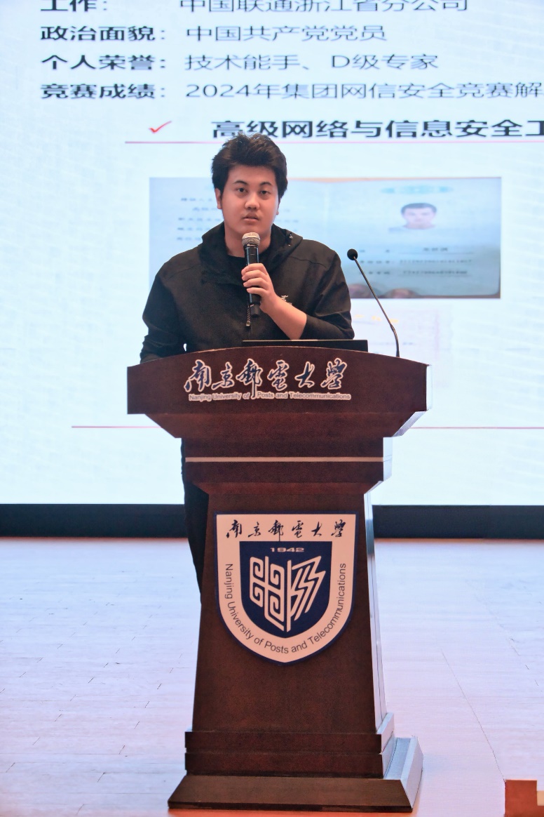 大会特别设置学长经验分享环节,四位2023届毕业学长携亲身经历而来,用鲜活经历与真诚感悟为学弟学妹们传经送宝,不同视角的分享形成互补,织就了一张立体的考研“经验网”。计算机科学与技术专业的郑毅学长,以自身“较低绩点逆袭上岸”的励志经历,打破了“绩点决定论”的认知误区,他鼓励同学们——莫因一时成绩困囿自我,考研正是证明自我的新赛道。他细致分享了自己的备考规划心得,着重强调“考研最重要的是选择,效率比时间更重要”。信息安全专业的陈炫栋学长巧妙与之呼应,提出“大三的选择,是人生轨迹的重要分岔口”,他结合身边同学的真实案例,阐释了报考院校、专业及导师课题组选择的重要性,呼吁大家“尽早布局,让规划走在备考之前”。软件工程专业的陶岳隆学长则将视角聚焦备考过程,建议同学们“凡事预则立”,提前制定计划,在日复一日的坚持中锤炼韧性、涵养良好心态,他还结合自身读研体验,真诚推荐同学们报考本校。信息安全专业的龙世淇学长则带来了不一样的成长启示,他曾冲击北邮失利,却凭借扎实的专业功底与充分的就业准备,在后续的春招中成功斩获浙江省联通的优质offer,他以自身经历提醒同学们,“既要为考研全力以赴,也要发挥自身优势,为未来留好多元道路”。
