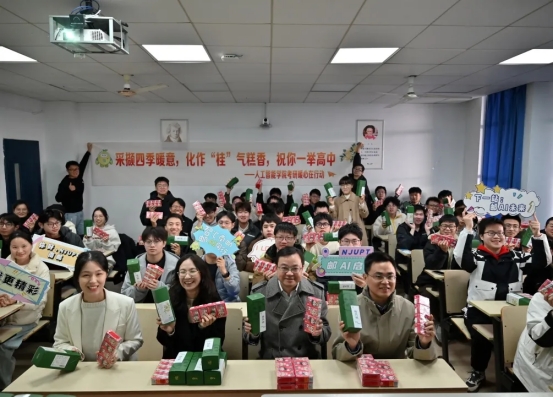 在这个最需要能量与陪伴的日子里,为增强同学们的考前信心,人工智能学院组织开展“冬季送暖·研途相伴”慰问活动。学院党委书记范结兵,副院长尹海涛,副书记、副院长葛丹,全体辅导员们走进教室,与大家交流备考近况,为冲刺阶段注入力量,还为同学们送上寓意“蟾宫折桂”的暖心桂花糕以及寓意“前程兴旺”的旺仔牛奶,以此向每一位努力奔赴理想的考研学子送上祝福。