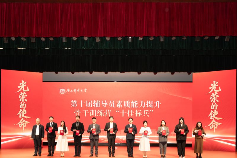 在“榜样的力量”篇章中,谢平为国家奖学金、省级、校级优秀学生等荣誉称号的集体和个人代表颁奖。马嘉亮等四位优秀学生分享他们“让宿舍成为学习型共同体”共同成长的故事,用亲身经历鼓励更多同学携手前行、相互扶持,共赴开阔明亮的崭新征程。