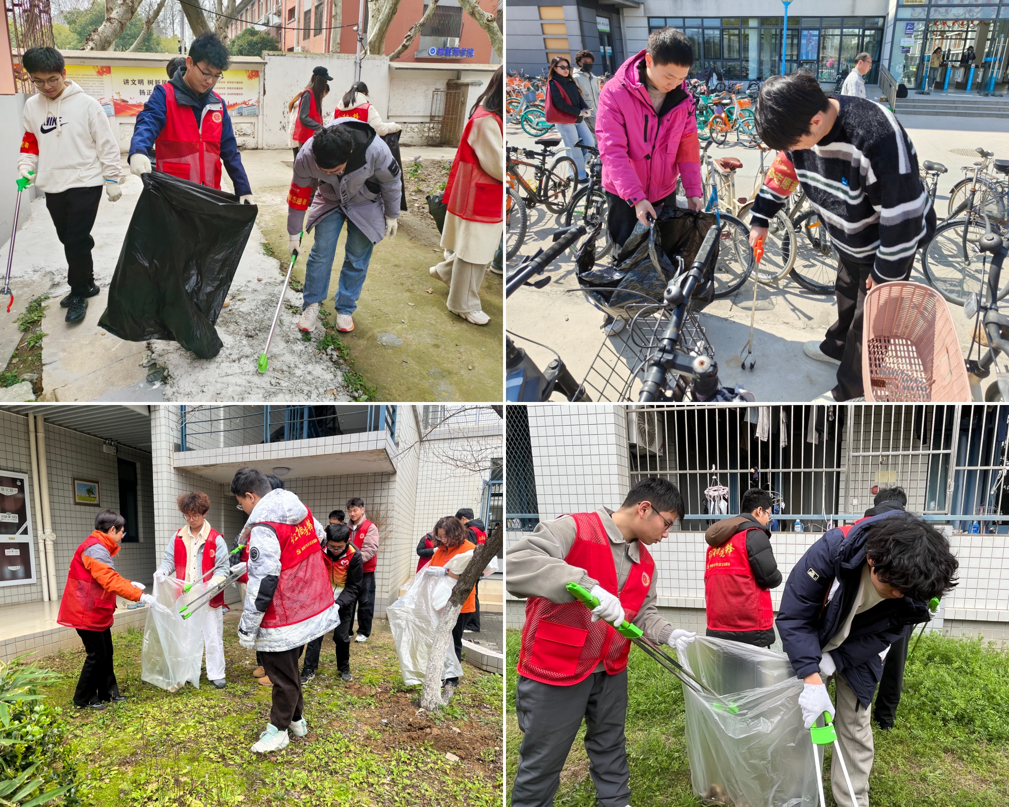 在仙林和三牌楼校区,学生志愿者们聚焦宿舍区周围的草坪和停车位,手拿垃圾袋、垃圾钳,弯腰俯身,清理散落的纸屑、塑料瓶、枯枝落叶等杂物。志愿者们发扬不怕脏、不怕累的优良作风,认真捡拾每一片垃圾,细致清理每一处杂物,不放过任何一处卫生死角,用双手还原苑区的整洁与美观。