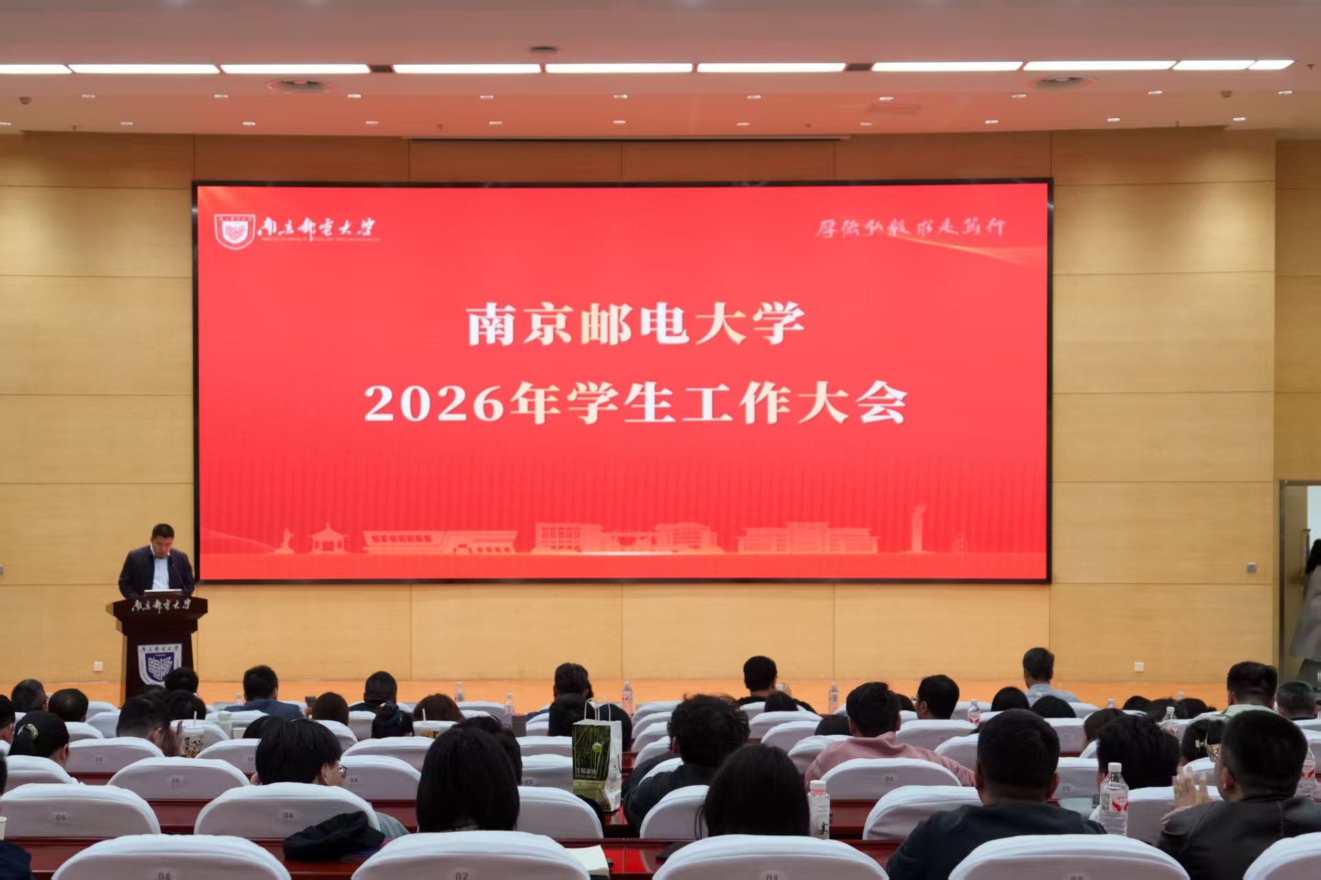 4月2日,南京邮电大学2026年学生工作大会在仙林校区图书馆运满满报告厅召开,总结交流2025年学生工作成效和经验,部署推进2026年学工系统重点工作。校党委常委、副校长谢平出席会议并讲话。党委学生工作部、党委研究生工作部、团委、保卫处等部门负责人,各学院学生工作负责人,全体辅导员及相关职能部门工作人员参加大会。